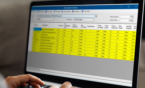 Importação de artigos a partir de ficheiros Excel com validação visual por cor.